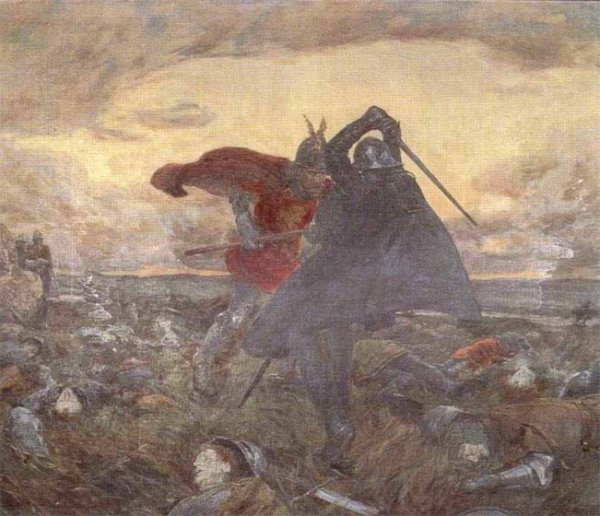 Mordred enlistigis helpon de la saksoj, la longtempaj malamikoj de la britonoj. Arturo devis deturni sian armeon al Logres kaj subpremi la ribelon de Mordred. Inter la mortigitoj en la batalo estis Gawain, kiu estis mortigita de sia propra frato.
